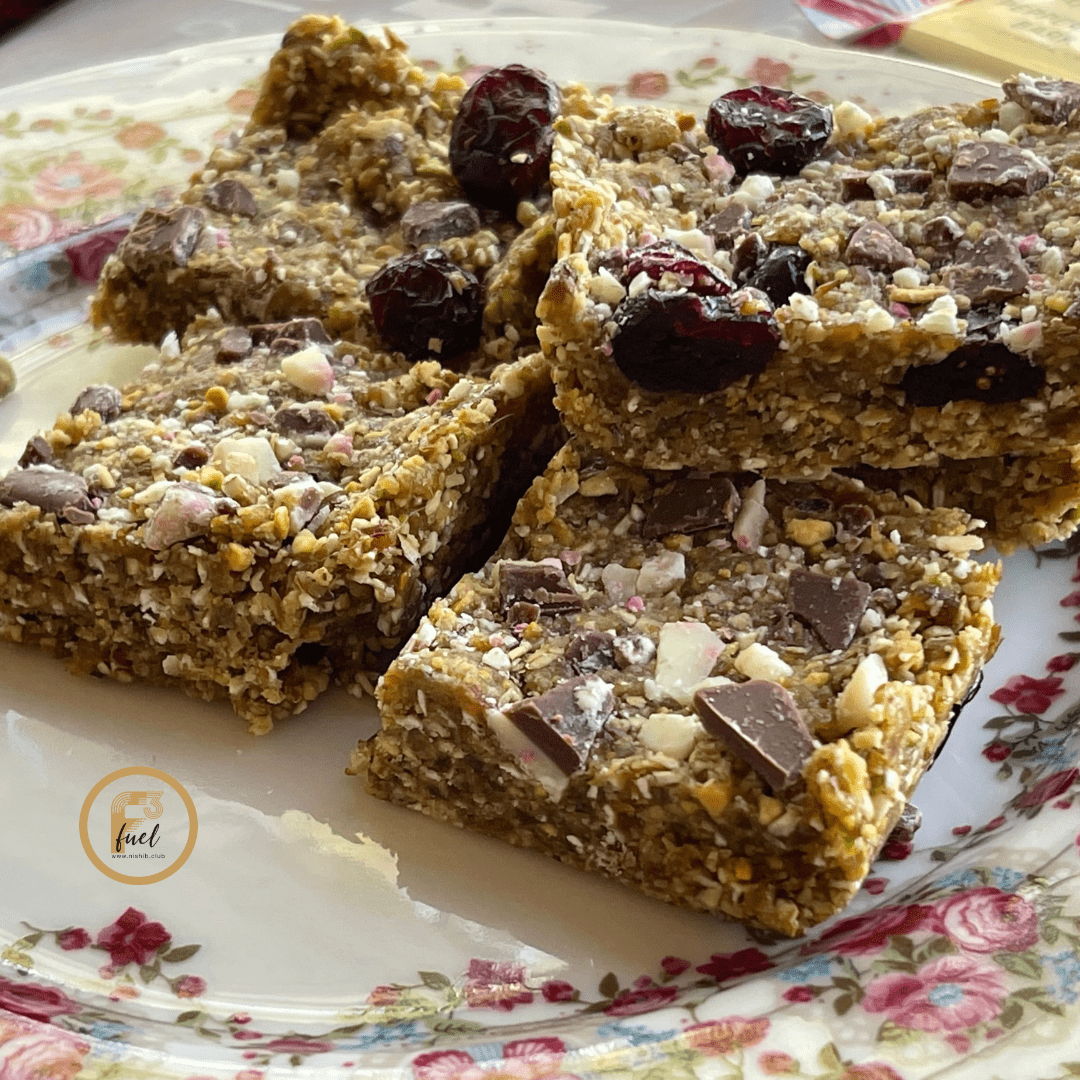 A hearty square that you can bite into and has a rich texture from the pistachios and oats. Sweetened with mejdool dates, they pack in ton of fiber but not so sweet. Great with tea, for snack and evening dessert.